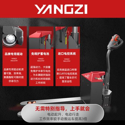 揚子搬運車QBM:全新智能動力系統,電磁剎安全有保障,一體式油缸整車無管路,加厚加固承載力強,電動行走輕松搬運。BMS管理系統,持久續航。